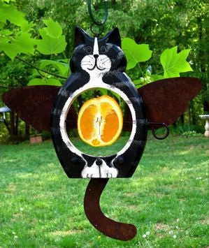 Whimsical fruit and suet bird feeders are for year round use. Angel Cats offer versatility to change up treats for your feathered friends according to season.