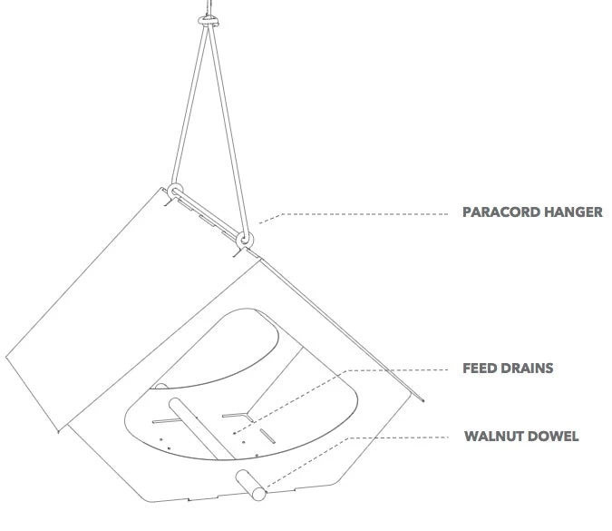 Hanging Fly-Thru feeder is simple to fill and clean, crafted of recycled rust-proof aluminum with durable powder coat finish. Birdseed remains protected from weather in the house shape cavity. Complete with ample drainage, walnut perch and long para-cord hanger for quick placement, the BEEKMAN Bird Feeder by Shift will entice new feathered friends for many years to come. Holds approximately 1.5 lbs.