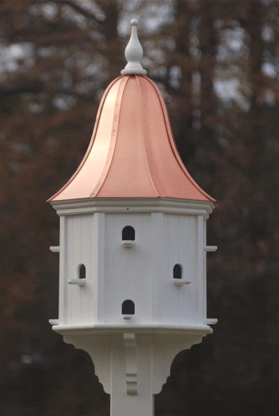 Crafted of cellular expanded PVC board (with the look of wood), and premium 16 oz. copper, the large martin house will last a lifetime with little to no maintenance.