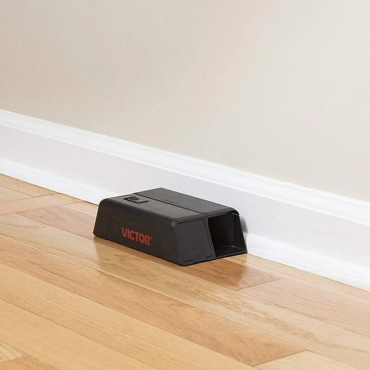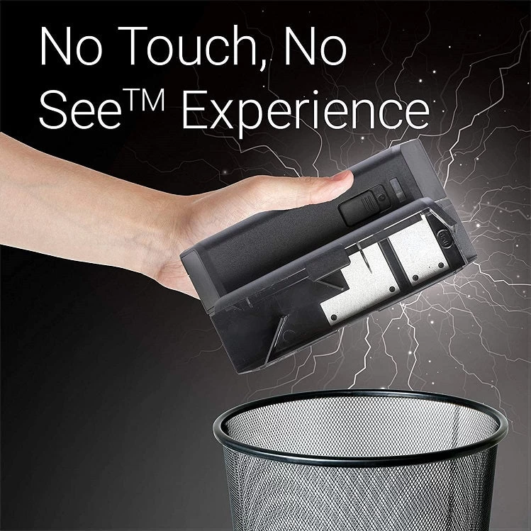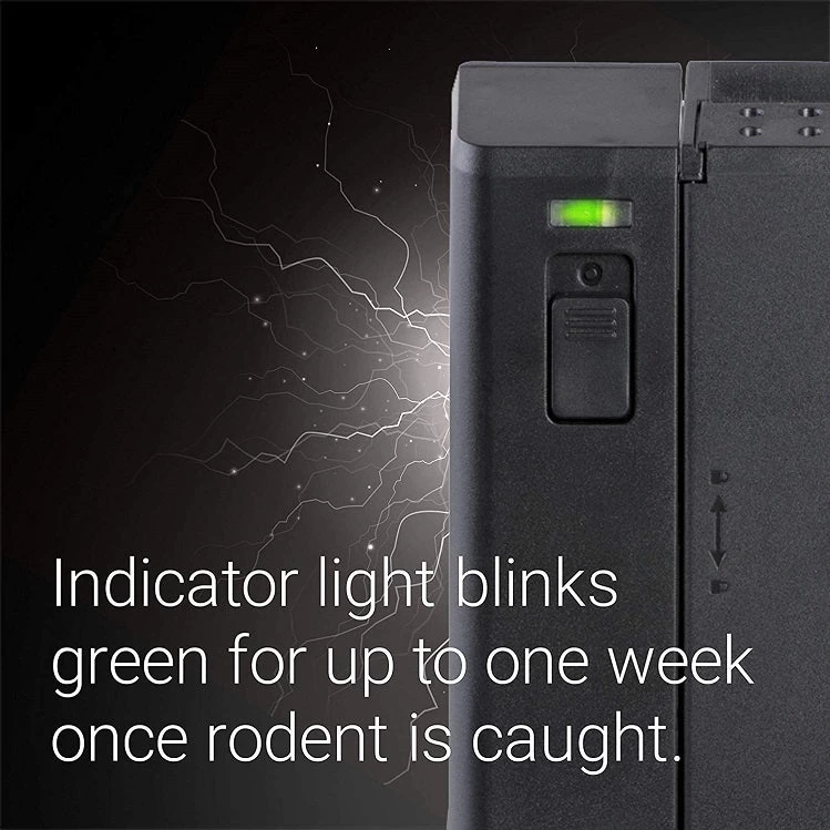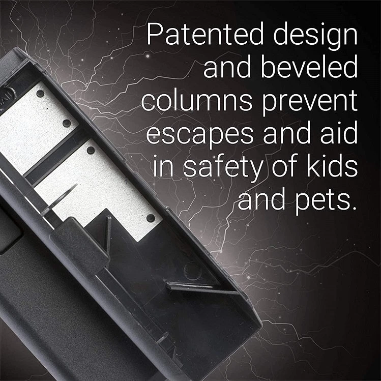 This electronic mouse trap is designed to quickly kill any mouse that takes the bait, with a powerful 4500 volt shock that kills in 5 seconds. The smartcircut technology senses mice in the trap to trigger the shock, while beveled columns hold them in place for a 100% kill rate- no escapes. A patented 3 plate tunnel design with built-in safety switch, battery indicator, and kill indicator. Easy to use: simply bait, turn on, place & empty when the green light indicates a kill.