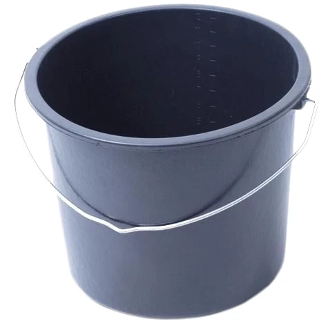 Zwarte emmer met maatverdeling.Ā Inhoud12 ltr