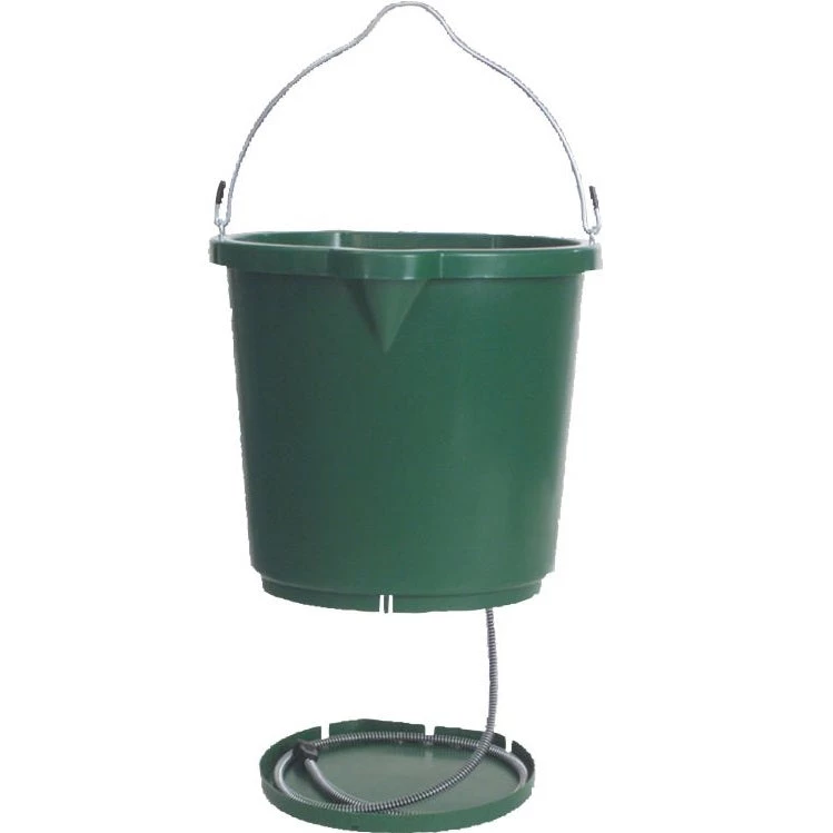 Keeping fresh water available for your animals all winter can be a challenge in cooler climates. This 120 watt, flat-back heated bucket can help! Oversized, with a five gallon capacity, it is thermostatically controlled to operate only when necessary (on 35° F, off 60° F). The unique “Hide-Away” cord compartment conceals cord for year round use, while a heavy-duty “anti-chew” cord protector prevents damage from curious animals while in use. Made with a heavy-duty bail with reinforced connectors and spill-free pour spout, this bucket might be just the thing you need for your barn this winter. Includes a table of measurements.