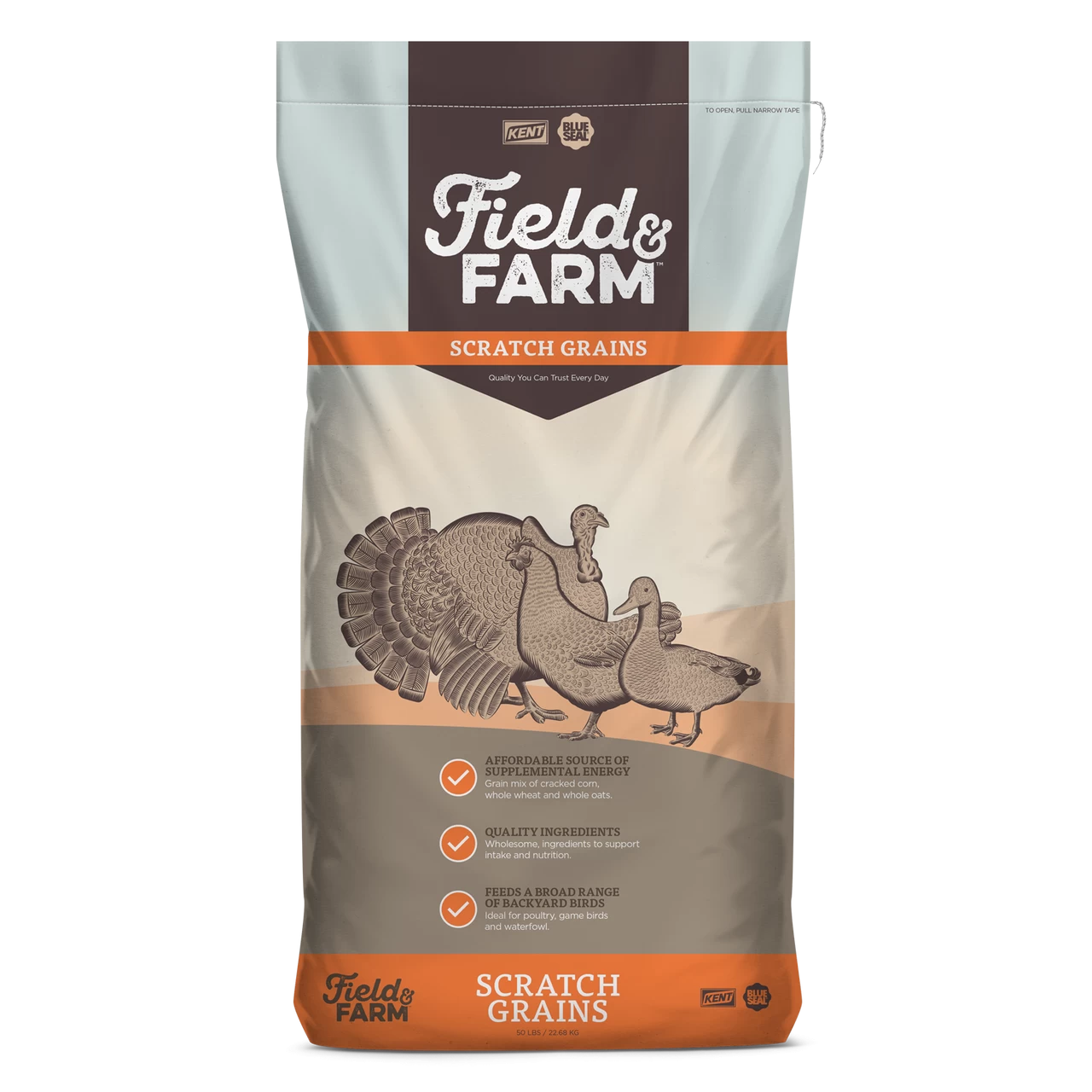 Field & Farm Mid-Atlantic Scratch grains is the feed for native game birds and pheasants. Wild turkeys, Ruffed Grouse, and Northern Bobwhite Quail naturally gravitate to this grain mix of cracked corn, whole wheat, and oats.