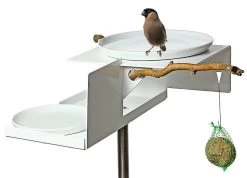 Classic platform fly-thru bird feeder is a distinctive addition to the landscape. Complete with vinyl mounting collar and decorative brackets, it fits right on your 4×4 post. Post not included.