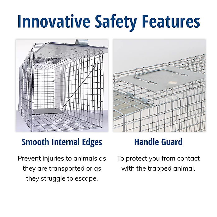 For The Animal- A strong door lock holds the animal safely inside the trap, while smooth, rolled internal trap edges prevent injuries to animals as they are being transported, or as they struggle to escape.