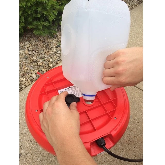 The “All Season” Heated 3-Gallon Poultry Fountain keeps water from freezing during the cold winter months.