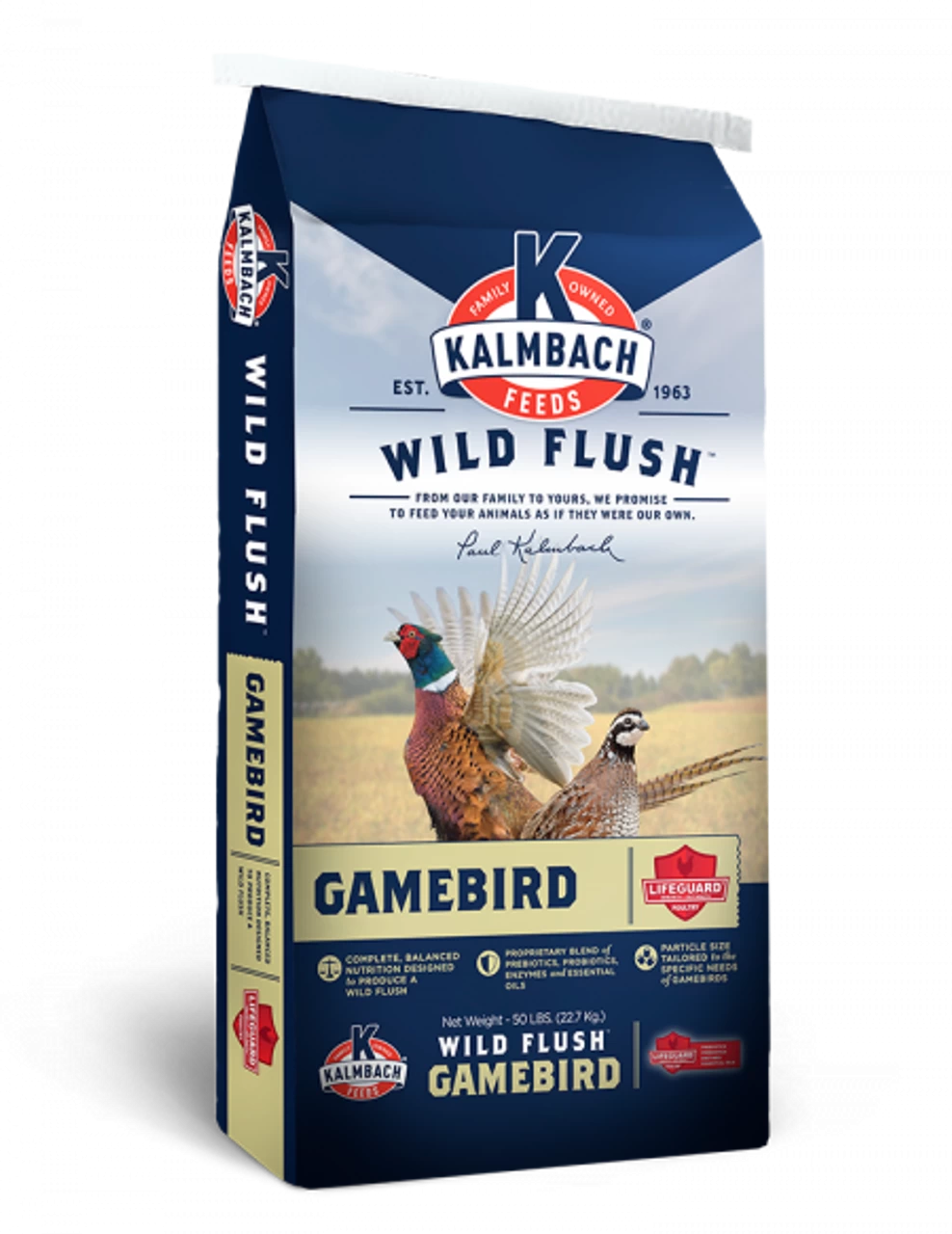 Kalmbach Wild Flush Breeder Gamebird Feed, 50Lb. Bag is balanced to support breeding males and females. Mini pellet form reduces waste and is ideal for game birds of various sizes. Contains a premium source of probiotics to support gut health.