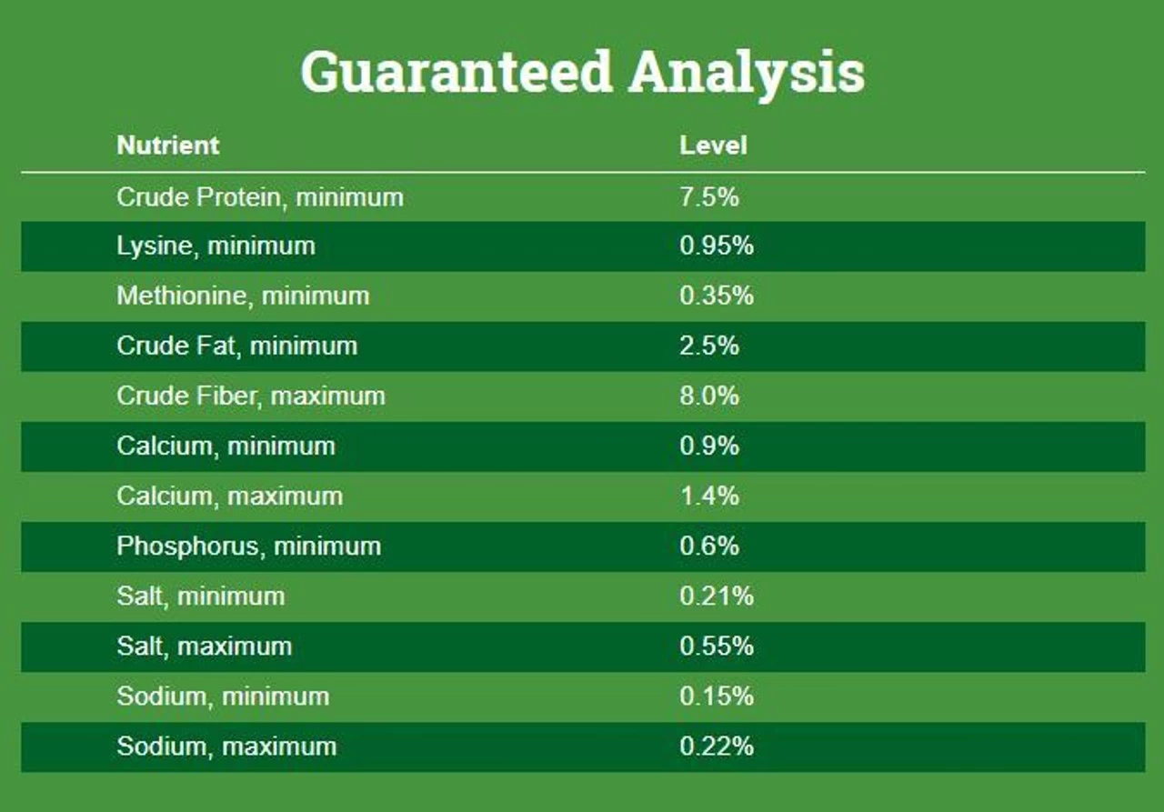 - A blend of grains to provide supplemental energy to support growth and egg production