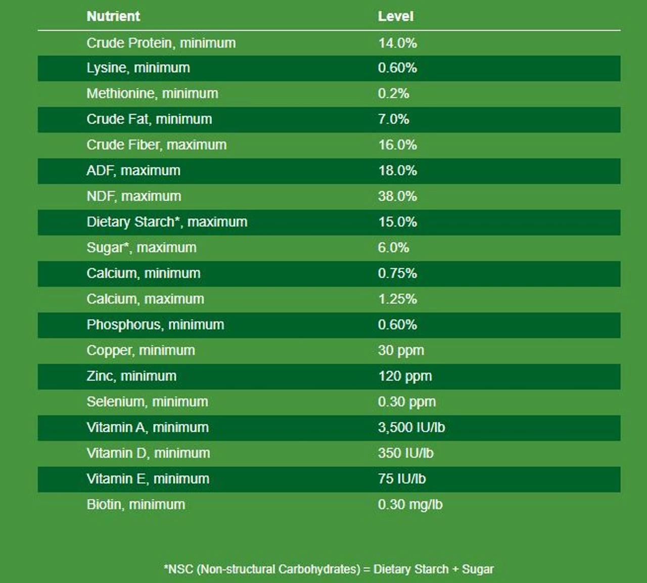 - Organic trace minerals and biotin support quality hooves and hair coats