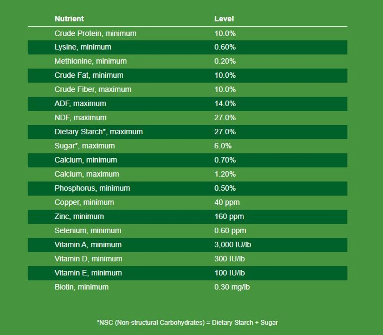 - Organic trace minerals and biotin support quality hooves and hair coats