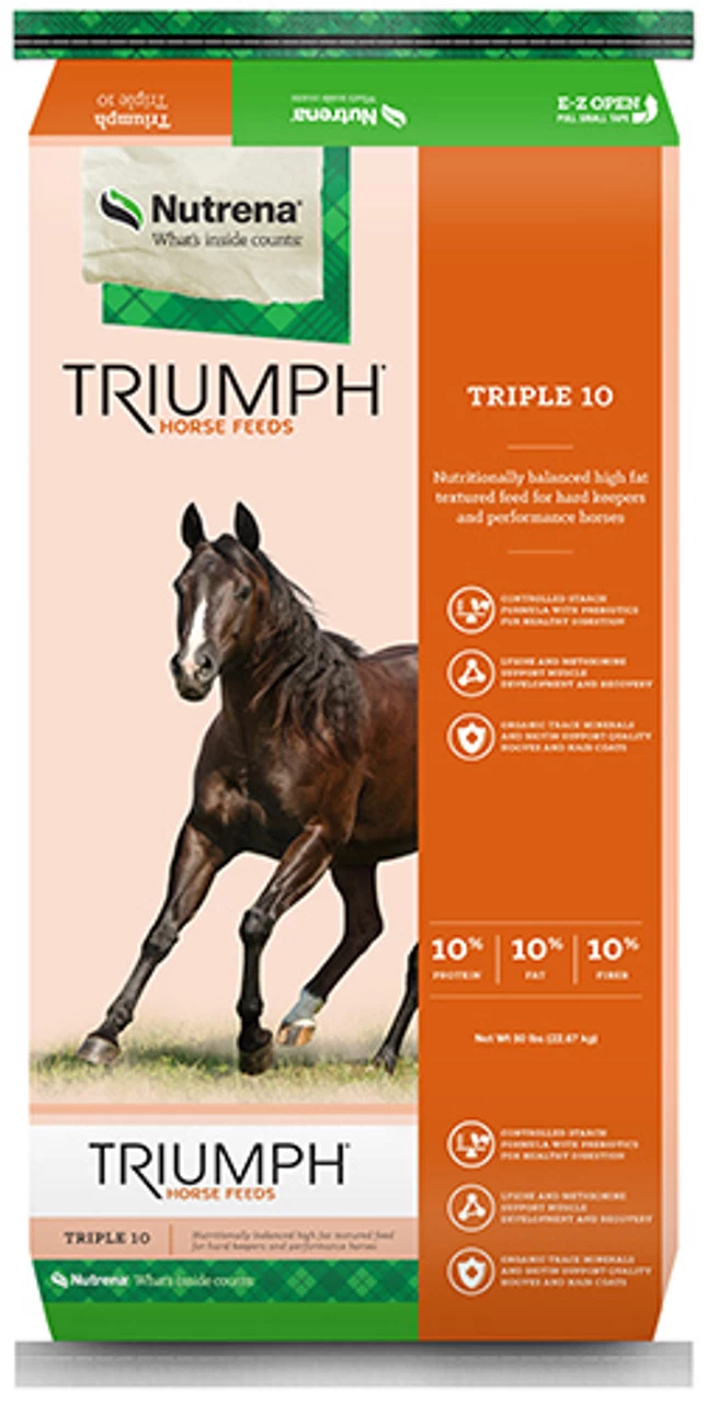 Nutrena Triumph Select Pellet Horse Feed is a nutritionally balanced high fat textured feed for hard keepers and performance horses.