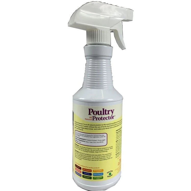 Poultry Protector is an all-natural solution to the common problem of mites, lice, fleas and ticks plaguing your backyard flock. The natural enzymes in Poultry Protector clean away these pesky parasites safely, without the use of the harsh chemicals found in so many other insect treatment products. Ridding the coop of these pests helps reduce stress and makes your birds more comfortable, so they can do what they do best: lay beautiful eggs, grow, and flourish.