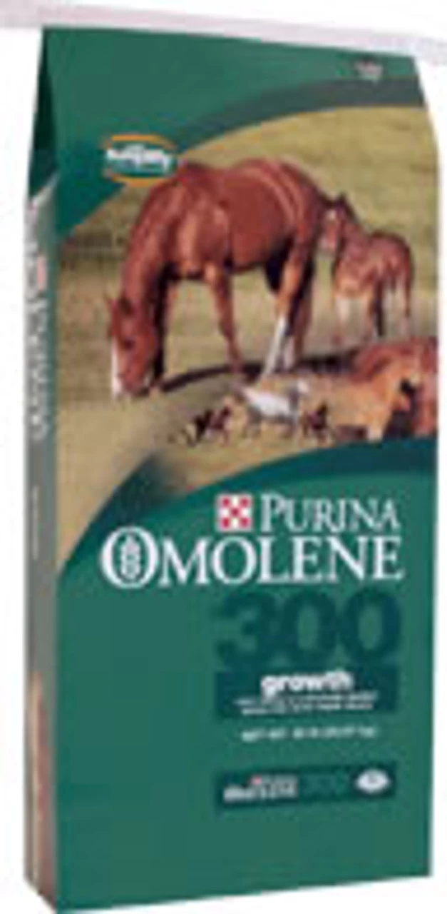 Purina® Omolene #300® Horse Feed contains the Purina® Amplify® Nugget, a patented, high-fat, extruded particle that contains a proprietary blend of vegetable oils, flax seed and rice bran for an optimal fatty acid profile. It also contains a blend of amino acids and polysaccharides as found in mare’s milk for optimal muscle growth and bone development in foals. Omolene #300® Horse Feed also provides additional protein and calorie requirements for lactating mares.”