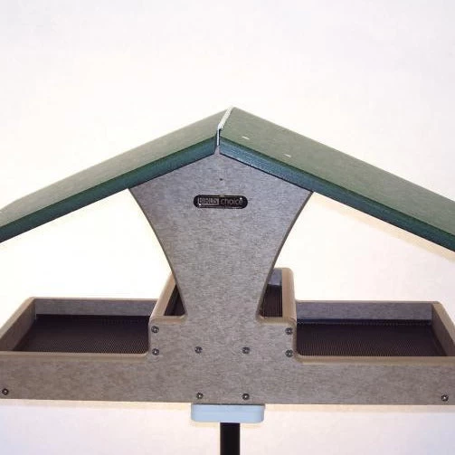 Quality construction keeps this feeder looking new, while the extended roof protects seed and birds while they eat. Offers great view too! Large Platform catches seeds and hulls, while removable seed trays make the hopper/platform feeder easy to clean. 4 quart capacity.